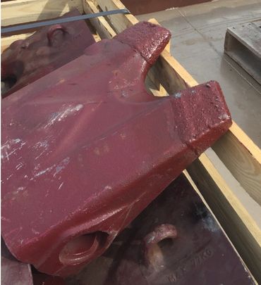Dribbled tungsten overlay added to cutting tips on a mulcher.